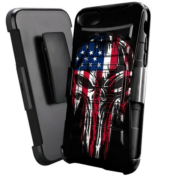 Dalux Hybrid Kickstand Holster Phone Case Compatible With Iphone Se 2020 Iphone 8 7 6 Melting Skull Us Flag Walmart Com