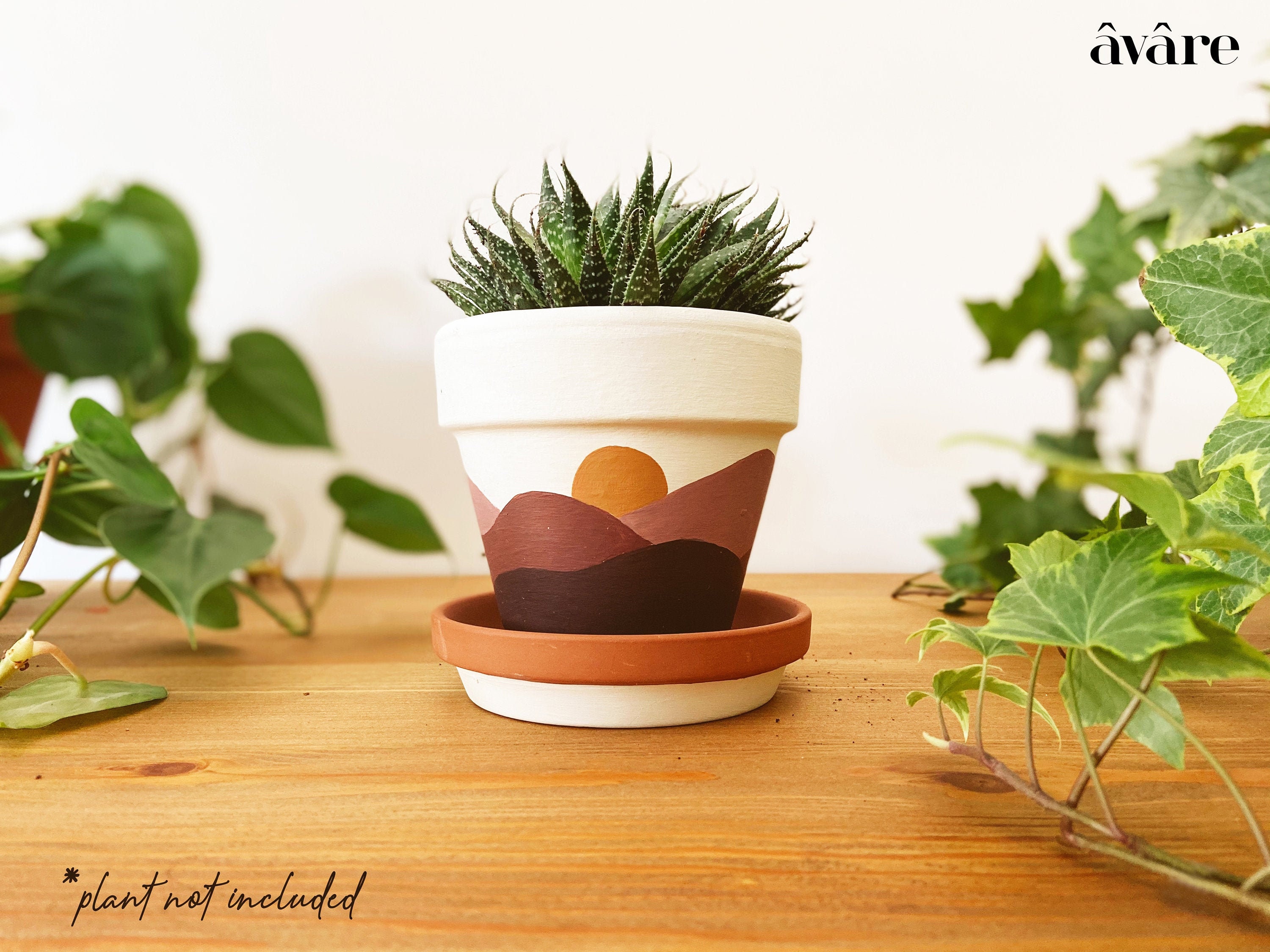 Hand Painted Planter Sunset Dunes Terracotta Pot Clay Etsy De