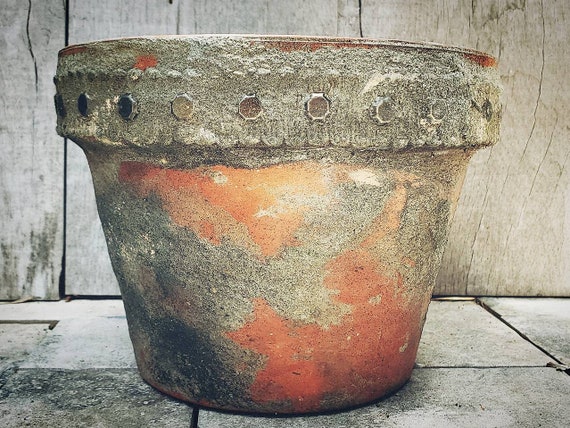Vintage Looking Terracotta Planter Pot With Decorative Trim Etsy